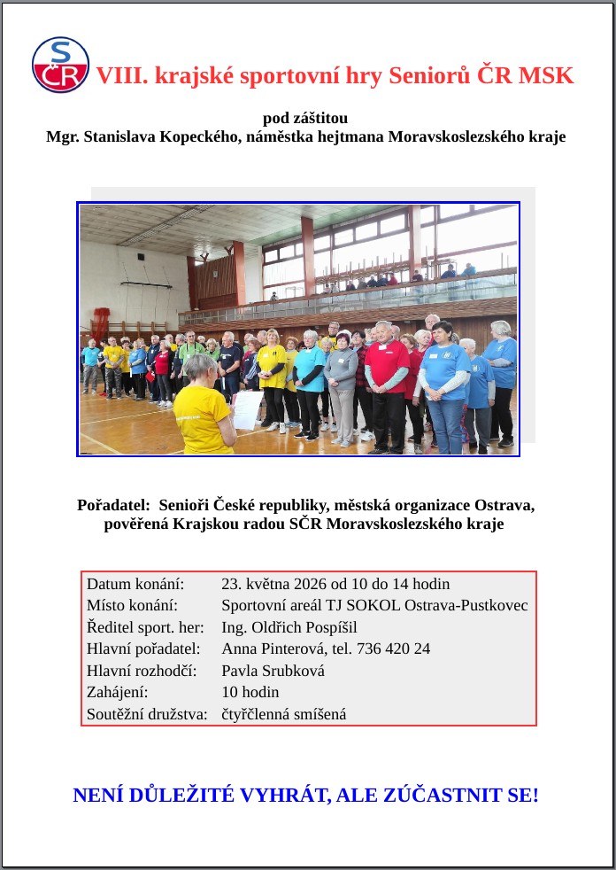 - Účast na 7. ročníku krajských sportovních her dne 14. 5. 2025, které organizuje Krajská rada SČR Moravskoslezského kraje.